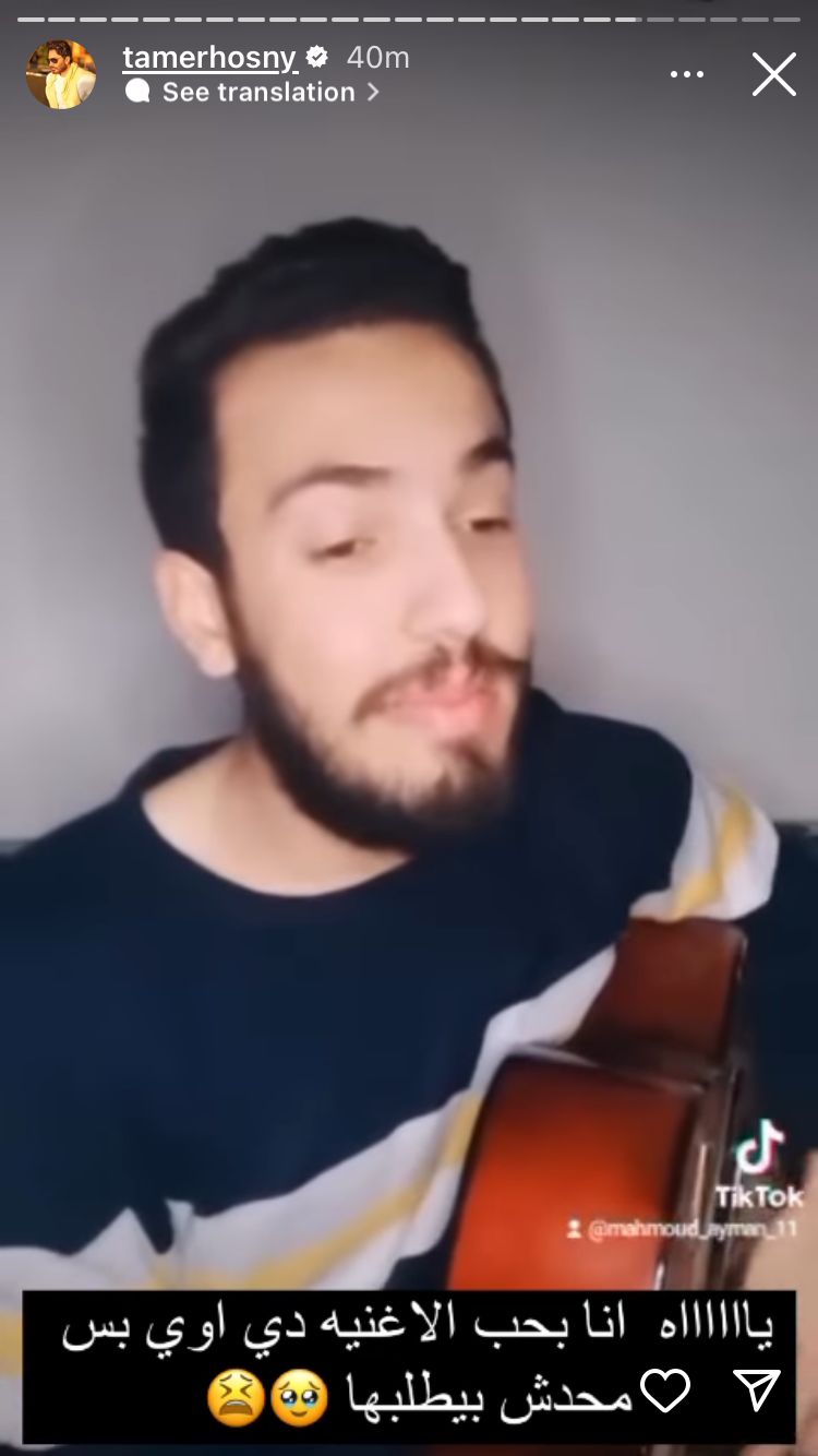 نشر الفنان تامر حسنى، مقطع فيديو قصير لمطرب شاب يغنى أغنية "بنت لذينة"، عبر حسابه الشخصى على موقع تبادل الصور والفيديوهات الشهير "إنستجرام".