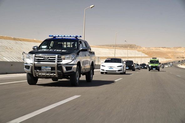 بدأت الجولة من بوابة طريق القاهرة العين السخنة حتى منطقة المارينا بمدينة الجلالة الجديدة، وشمل الموكب السيارات الرياضية المعدلة والسيارات الكهربائية وسيارات الدفع الرباعي.