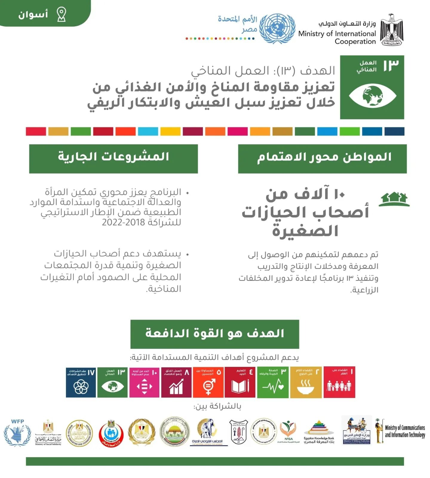 وتنوعت البرامج التي تم تفقدها بين الأمن الغذائي وتعزيز المرونة المناخية للمجتمعات الريفية، وتحفيز جهود الرعاية الصحية وتنظيم الأسرة، إلى جانب تمكين المرأة والفتيات يتضمن الإنفوجراف التالي تفاصيل المشروعات التي تم تفقدها.
