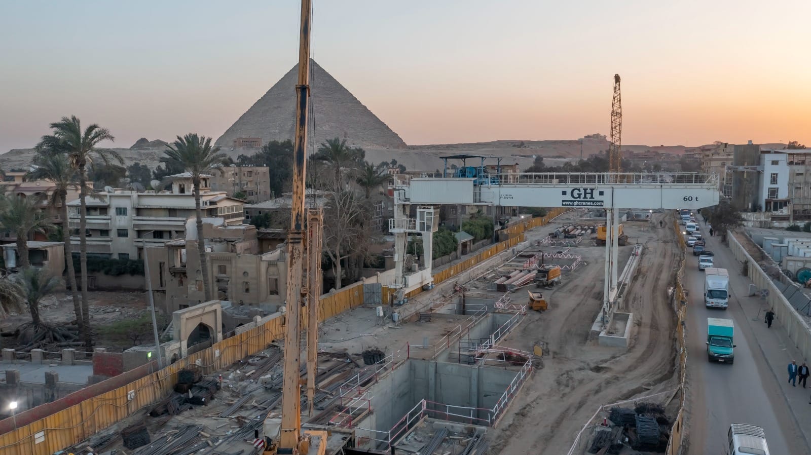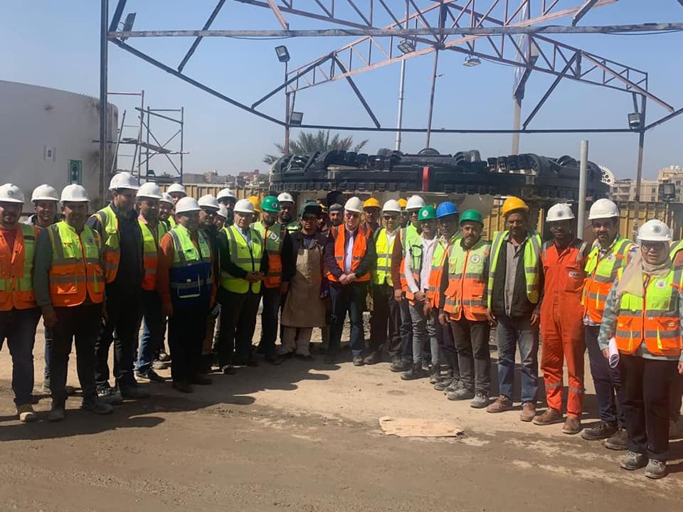 شاهد المهندس سيد فاروق، على الطبيعة أعمال تجميع ماكينة الحفر النفقي الألمانية ""TBM والتى قامت بشرائها الشركة حديثا للعمل بالمشروع ، حيث تفقد منطقة التجهيز بمحطة الأهرامات، والتي يجري العمل بها على قدم وساق من أعمال تركيب ولحام لأجزاء الماكينة التي يبلغ طولها 100 متر ، ويبلغ قطر الدرع الأمامي لها 6.7 متر و وزنها 685 طن وعدد مقطورات الدعم خلف درع ماكينة الحفر 6 مقطورات ويبلغ القطر الخارجي للنفق 6.4 متر والقطر الداخلي للنفق 5.8 متر.