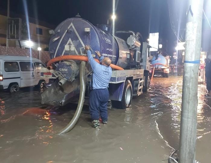 شركة مياه القليوبية تواصل أعمال رفع تراكمات الأمطار من الشوارع (صور)