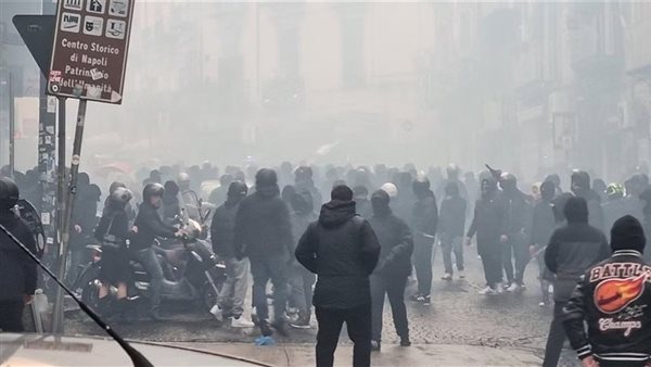 اشتباكات بين جماهيرآينتراخت فرانكفورت والشرطة الإيطالية قبل مباراة نابولي في دوري الأبطال (صور)