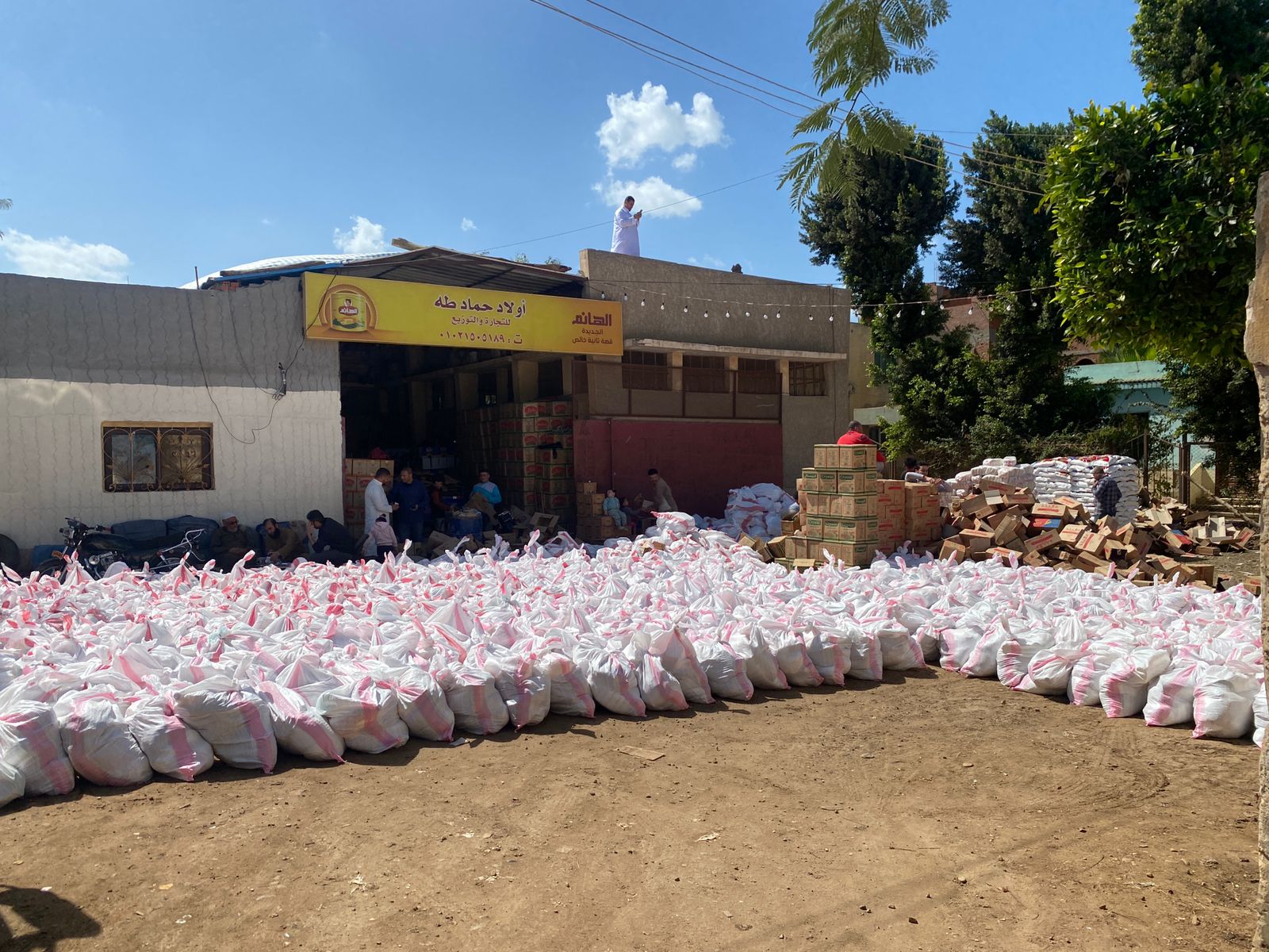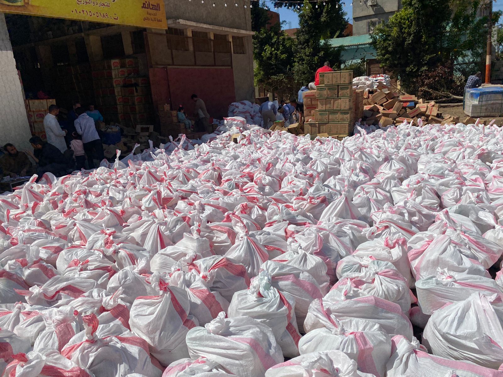 وكشف محمود طه "مكونات الشيكارة الواحدة 10 كيلو رز و10 كيلو سكر و20 كيس مكرونة متنوعة وزجاجة زيت كبيرة وعلبة سمنة 2كيلو جرام وباقى الكمية كيلوهات متنوعة من الخضار والطماطم والبطاطس وربنا يكتر".