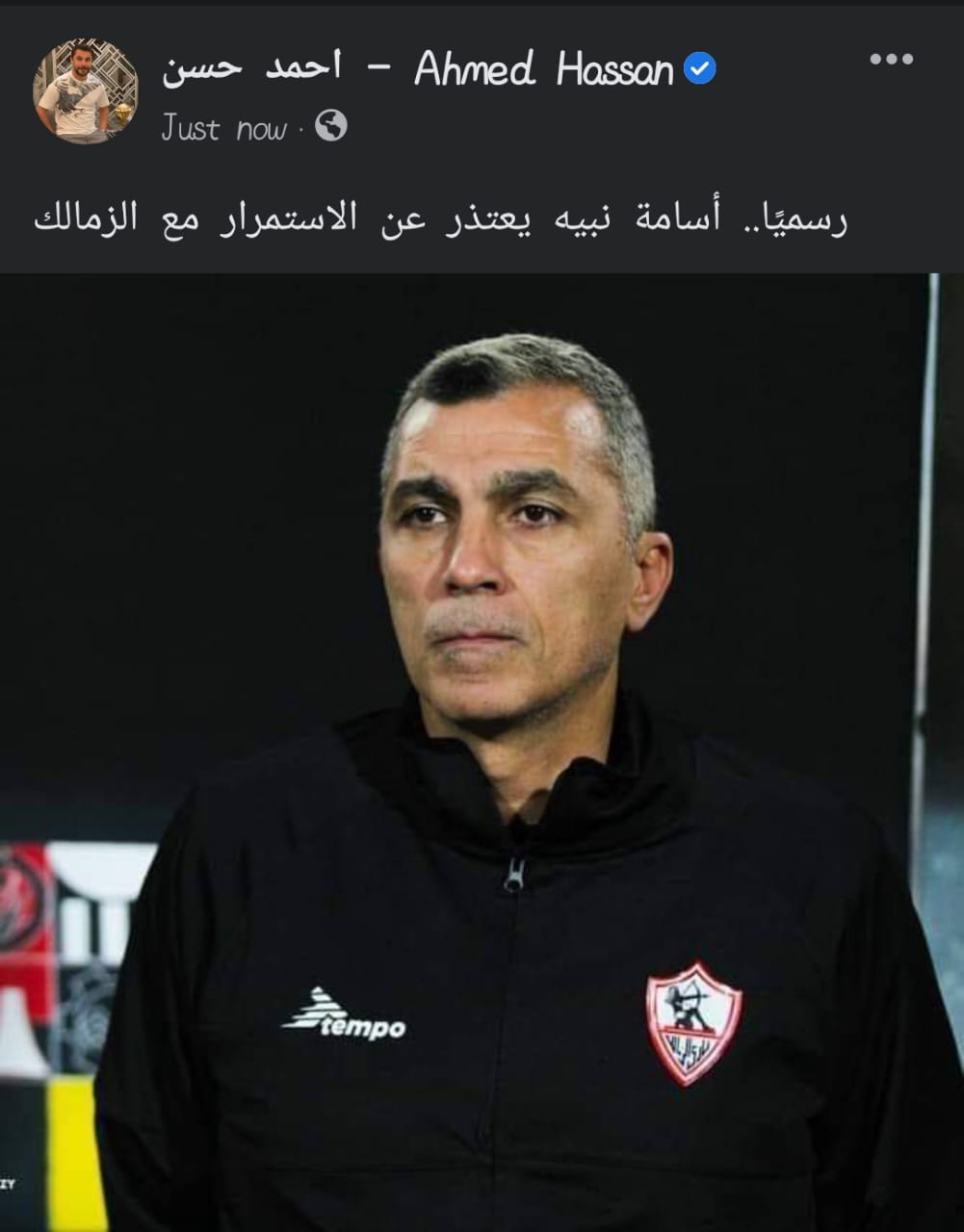 وكتب أحمد حسن نجم الكرة المصرية عبر "فيسبوك": "رسمياً .. أسامة نبيه يعتذر عن الأستمرار مع الزمالك".