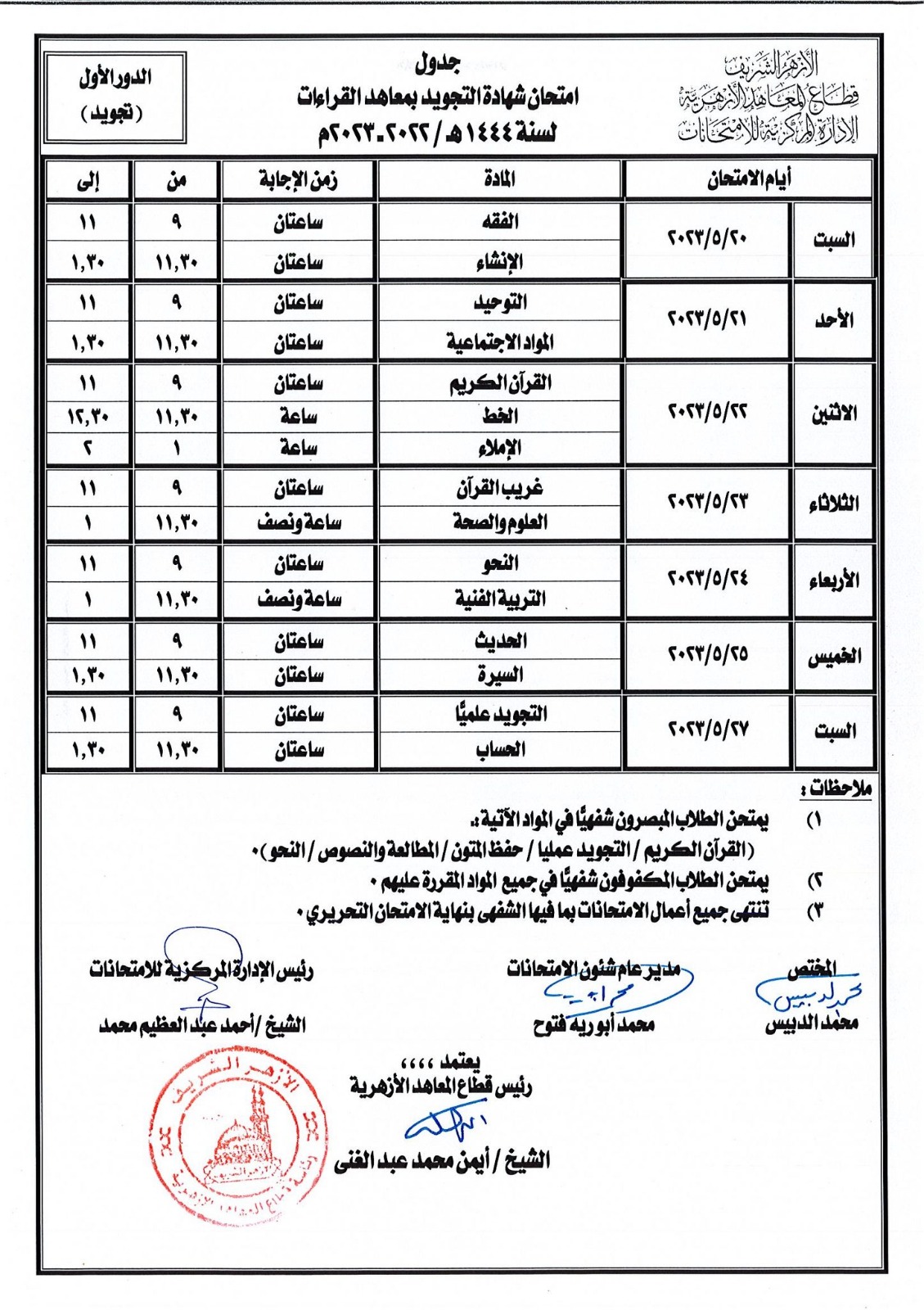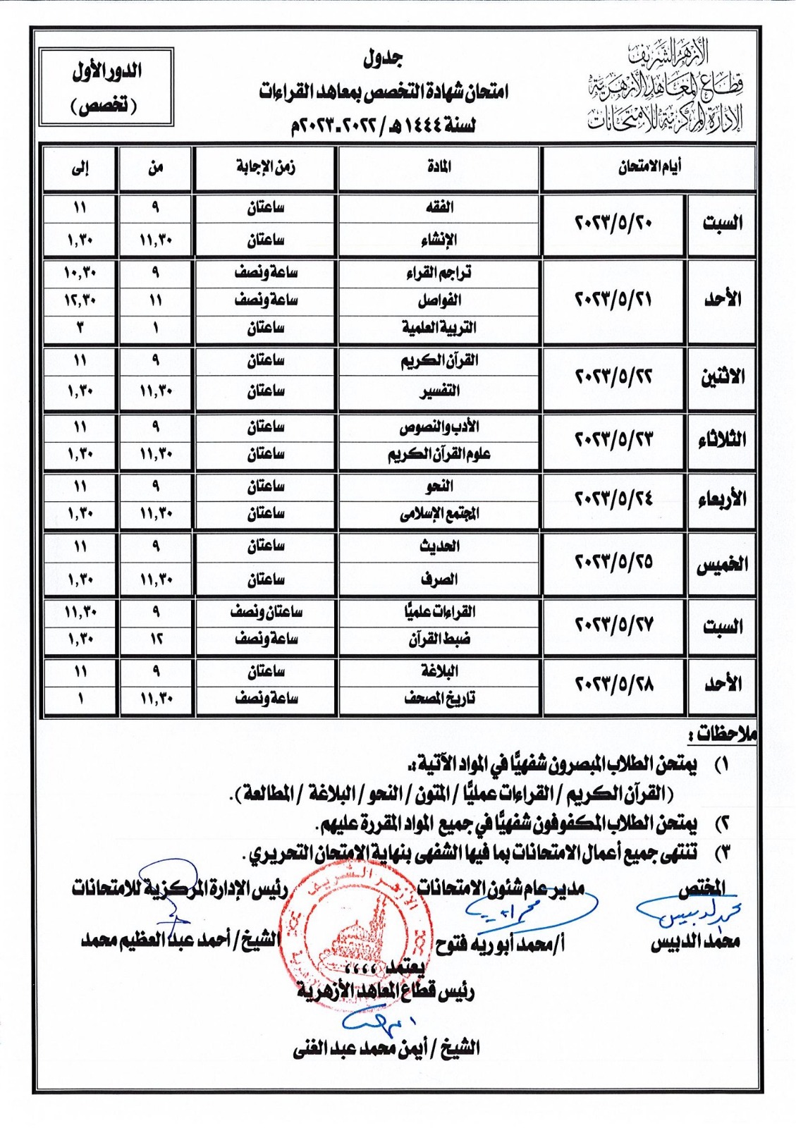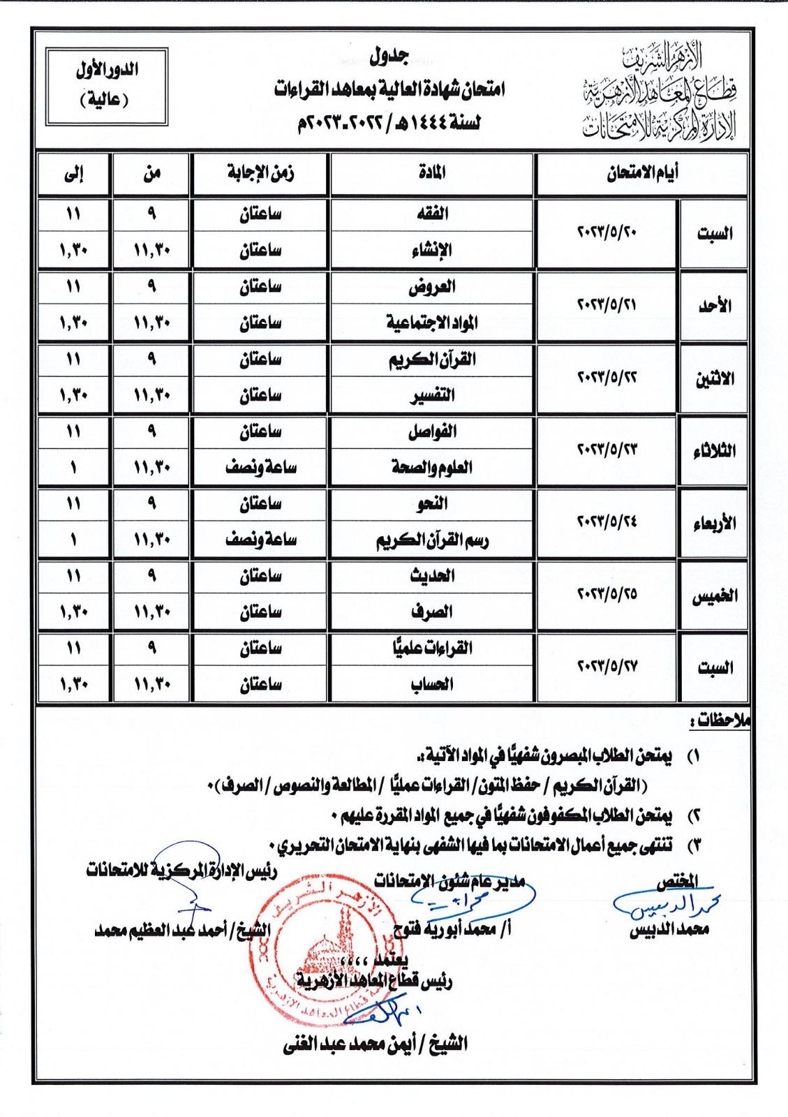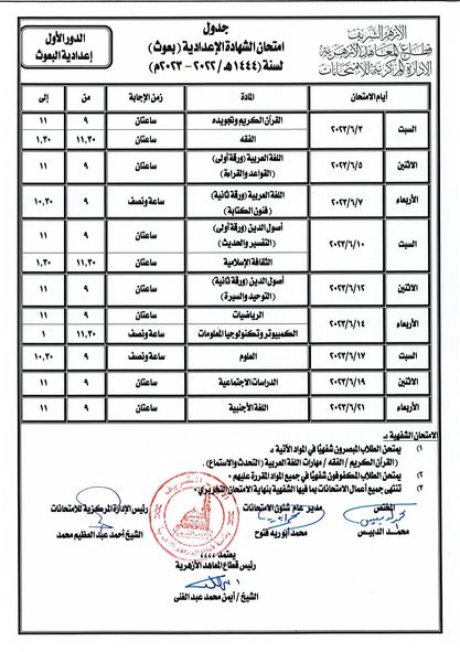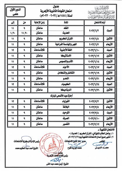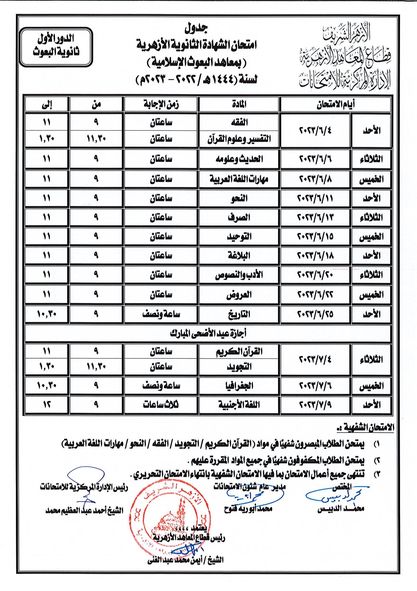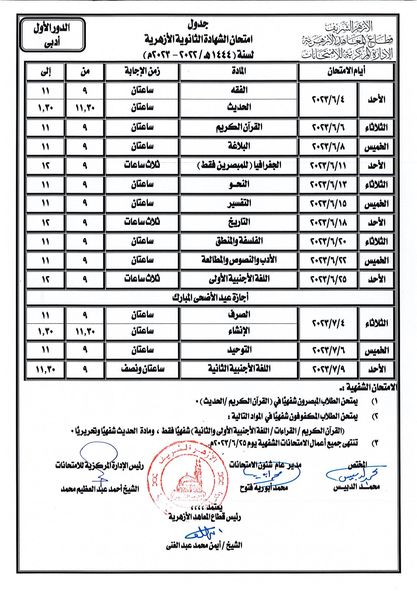 ننشر جدول امتحانات الثانوية الأزهرية للقسمي الأدبي والعلمي
