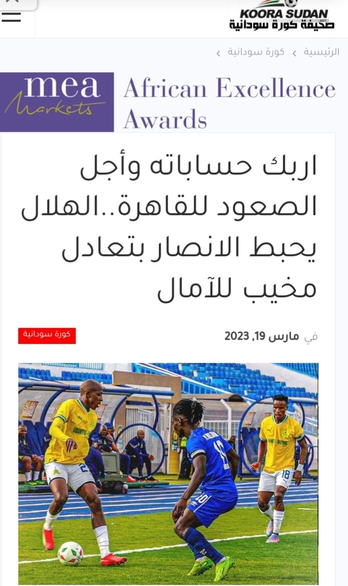 وقالت الصحيفة إن رئيس نادي الهلال هشام حسن السوباط، أعلن رئاسته لبعثة الهلال المتوجهة للقاهرة، كما أعلن عن تواجد مجلس الإدارة بكامل أعضائه مع البعثة في القاهرة في مباراة الأهلي التي سماها بمباراة " الصمود والصعود".