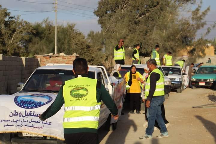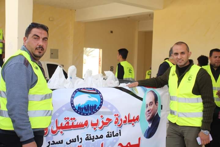 وبدأت أمانة حزب مستقبل وطن بمدينة رأس سدر، أولى مبادرات قوافل الخير لتوزيع المواد الغذائية في وديان المدينة.