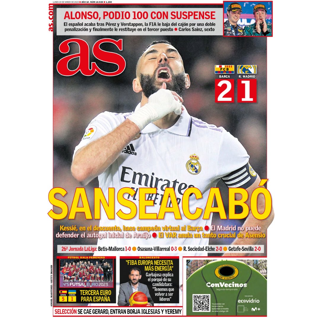 علقت صحيفة "آس" الإسبانية، على كلاسيكو الليجا وعنونت، "الفرصة المنتهية.. كيسييه يجعل برشلونة بطلاً افتراضياً، لم يتمكن ريال مدريد من الدفاع عن هدف أراوخو الأول، وألغى حكم الفيديو المساعد هدفاً حاسماً من أسينسيو".