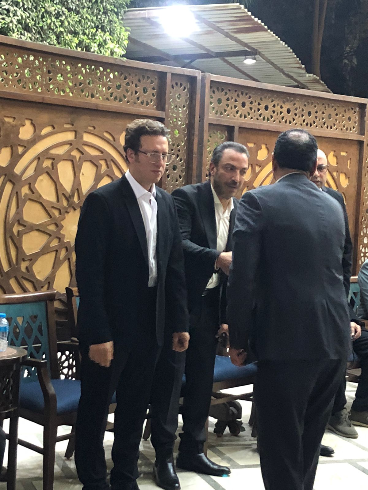 طارق لطفي يقدم واجب العزاء في زوجة مجدي فكري