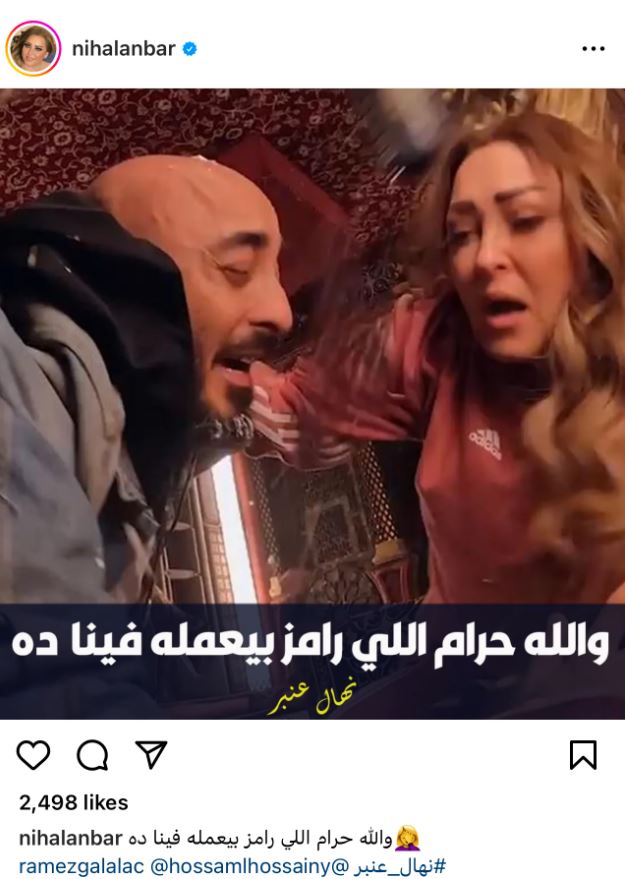 ونشرت نهال عنبر، صورة لها ظهرت فى البرومو لمقلب رامز جلال، الذى طرح أمس، وعلقت عليها قائلة :"والله حرام اللي رامز بيعمله فينا دا".