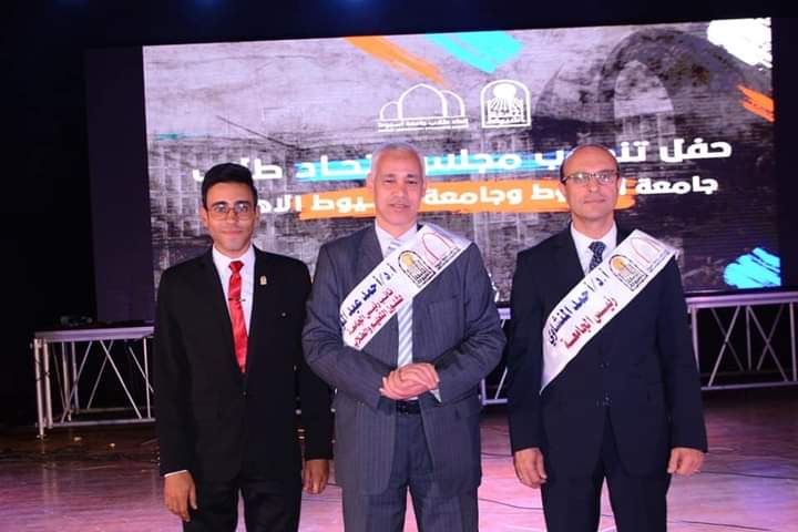 و شهدت ختام الحفل تكريم و تنصيب الدكتور أحمد المنشاوى رئيس الجامعة، و نائبه الدكتور أحمد عبد المولى مجلس اتحادي طلاب جامعة أسيوط الحكومية والأهلية.
