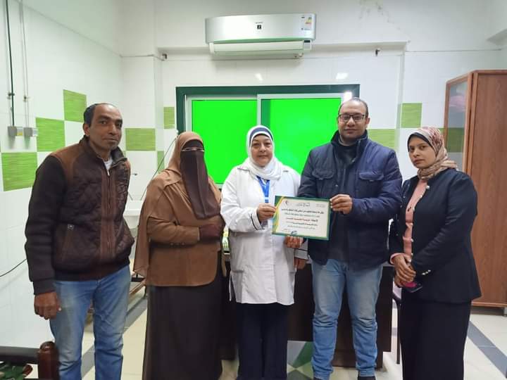كما قام بتهنئة ممرضة الإستقبال فوزيه محمود الحناوي لإختيارها الأم المثالية وقام بتوجيه التهنئة بمناسبة عيد الأم لكل أطقم الأطباء والتمريض والعمال بمستشفى حميات دمنهور.