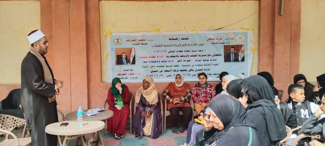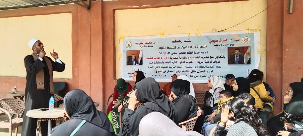 كما تم تنفيذ ندوة بمركز شباب خورشيد بمحافظة الإسكندرية بعنوان " إدارة الوقت و الإستفادة منه ، ألقاها الواعظ محمد حزين، حيث تناول طرق الإستفادة من الوقت في تعلم مهارات وحرف جديدة ،تساعد في زيادة موارد الأسرة ، مما يخفف الأعباء المالية عن كاهل الأسر، كذلك طرق الإستفادة من الخامات المتوفرة لإدارة المنزل بأقل التكاليف، موضحاً اسس التربية الإيجابية السليمة لبناء مجتمع سليم ، ومفهوم القيم والأخلاق والصفات الحميدة و مجموعة من الضوابط الأخلاقية التي تحدد سلوك الفرد.