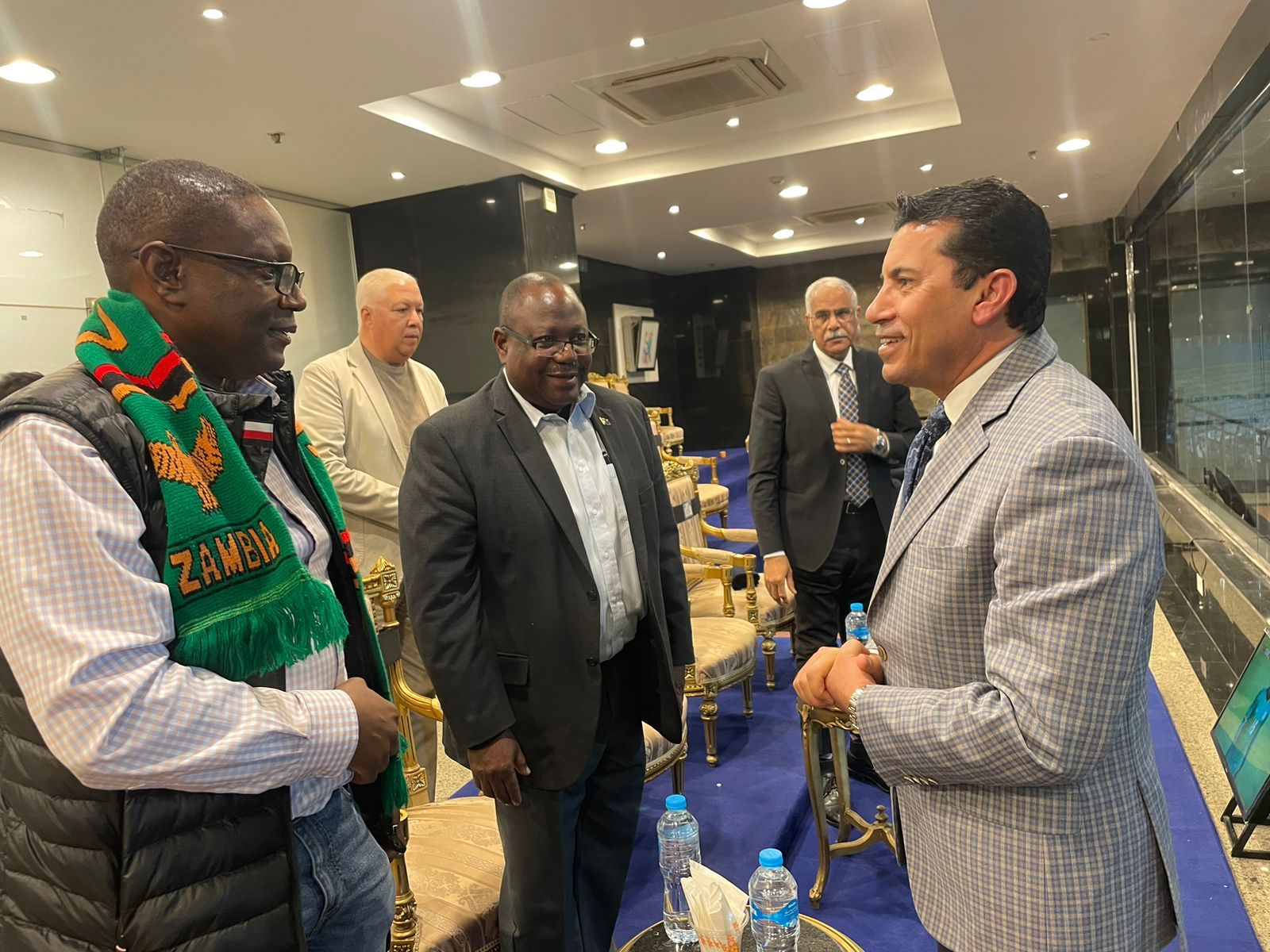 وزير الرياضة يؤازر المنتخب الاوليمبي في مباراته أمام زامبيا