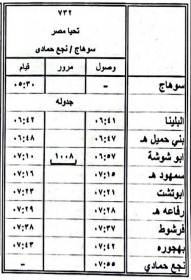 كما تقرر أن يعود من محطة أسوان الساعة 19.00 ويصل القاهرة الساعة 6:50 وبنفس محطات الوقوف فى رحلة الذهاب على أن يعمل أيام الإثنين والأربعاء والجمعة من كل أسبوع طبقاً للجداول المرفقة.