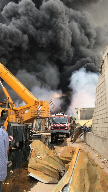 السوق الحرة وتحديدا فى مستودع يحتوى على رواسب زيوت وإطارات، سارعت قوات الإنقاذ