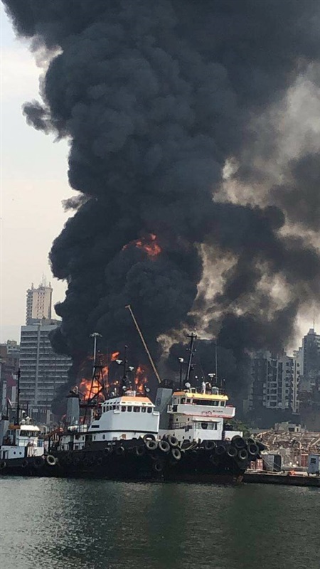 ويذكر أنه اندلع حريق ضخم فى مرفأ بيروت بالعاصمة