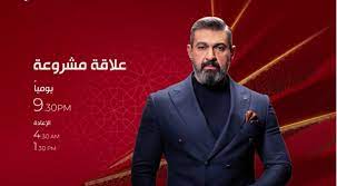 يأتي مسلسل علاقة مشروعة من بطولة الفنان ياسر جلال، ضمن مسلسلات رمضان 2023 على قناة الحياة في رمضان، و يعرض الساعة 9.30 مساء ويعاد الساعة 4.30 فجراً والساعة 1.30 مساء.