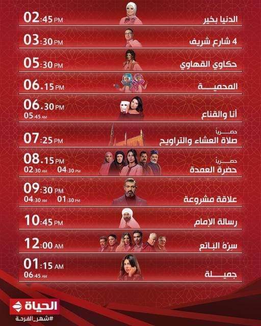 مواعيد مسلسلات وبرامج قناة الحياة في رمضان