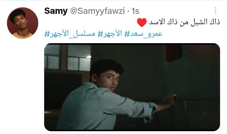 أشاد الجمهور بأداء الفنان رابي، في مسلسل "الأجهر" واكدوا انه موهبة مميزة وأنه نسخة مصغرة من والده الفنان عمرو سعد حتي في الصوت.