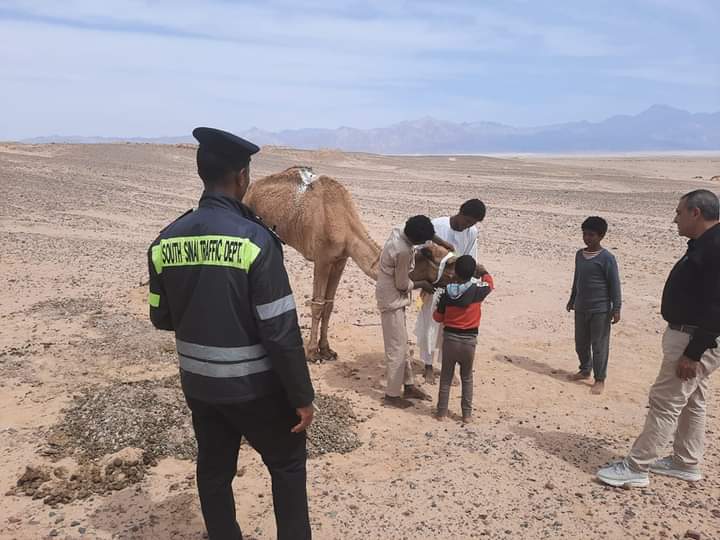 ارتفعت نسبة الحوادث، بمدن محافظة جنوب سيناء، بسبب الجمال العابرة على الطرق السريعة، والتي كان آخرها إصابة 8 سائحين أجانب و3 مصريين.