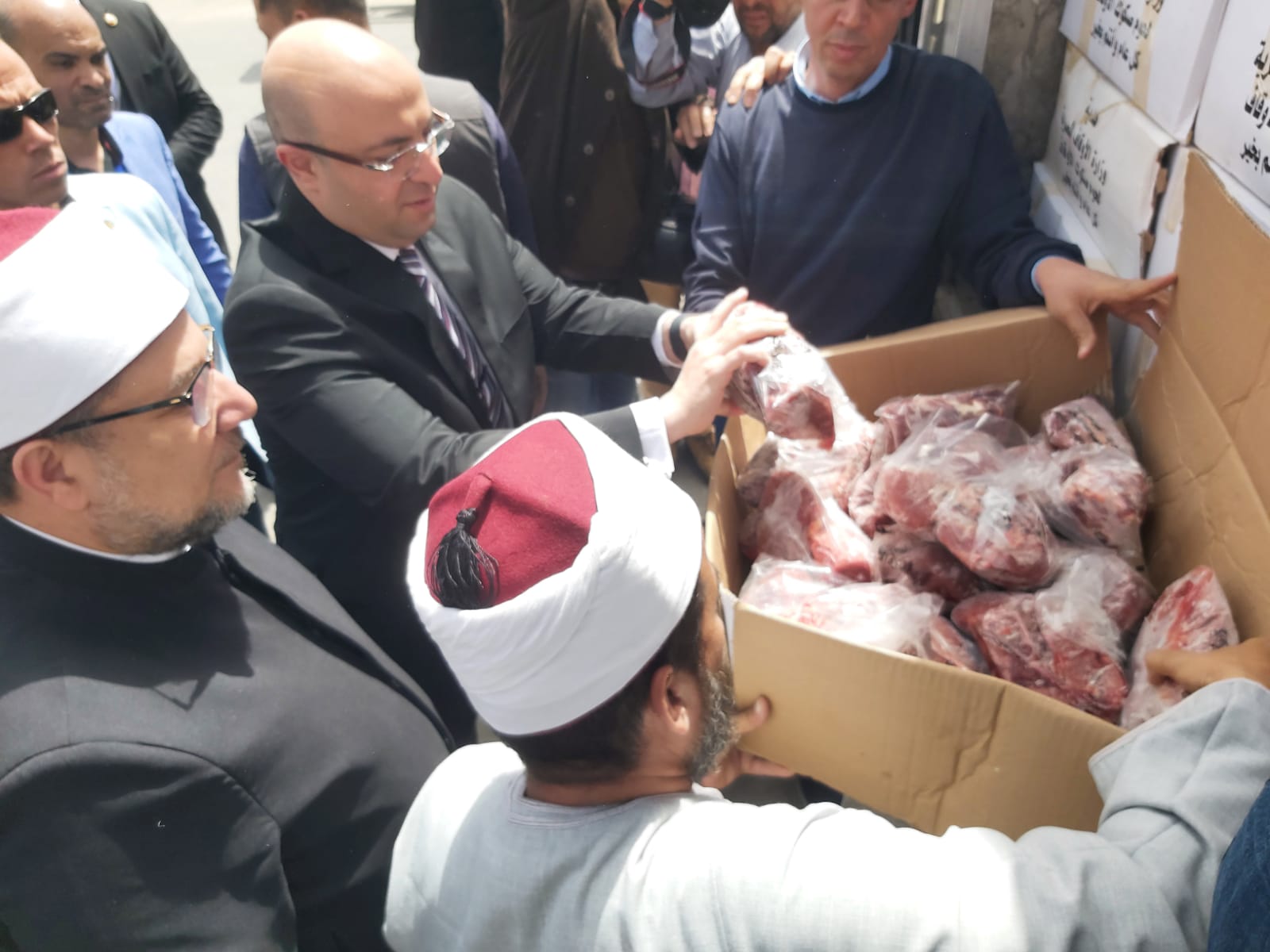 وزير الأوقاف ومحافظ بني سويف يشهدان استلام لحوم صكوك الإطعام لتوزيعها على الأسر الفقيرة