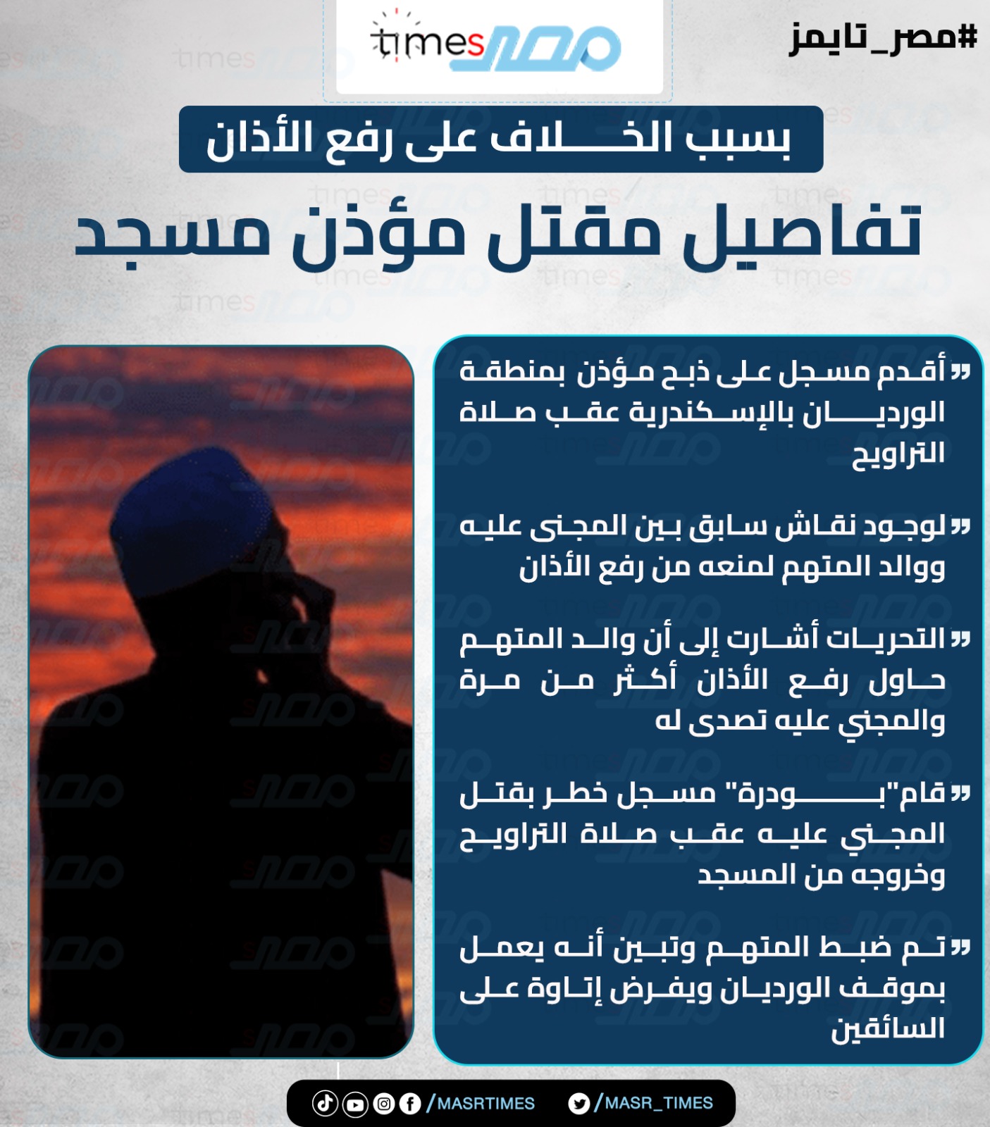 حبس بلطجي ذبح مؤذن مسجد عقب صلاة التراويح بالإسكندرية:"منع والدي من رفع الآذان"