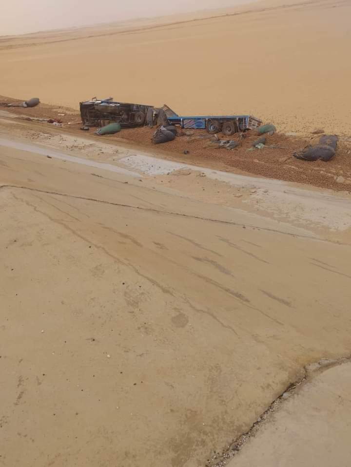إنقلاب سيارة نقل محملة بالبطاطس علي الطريق الدائري بالوادي الجديد