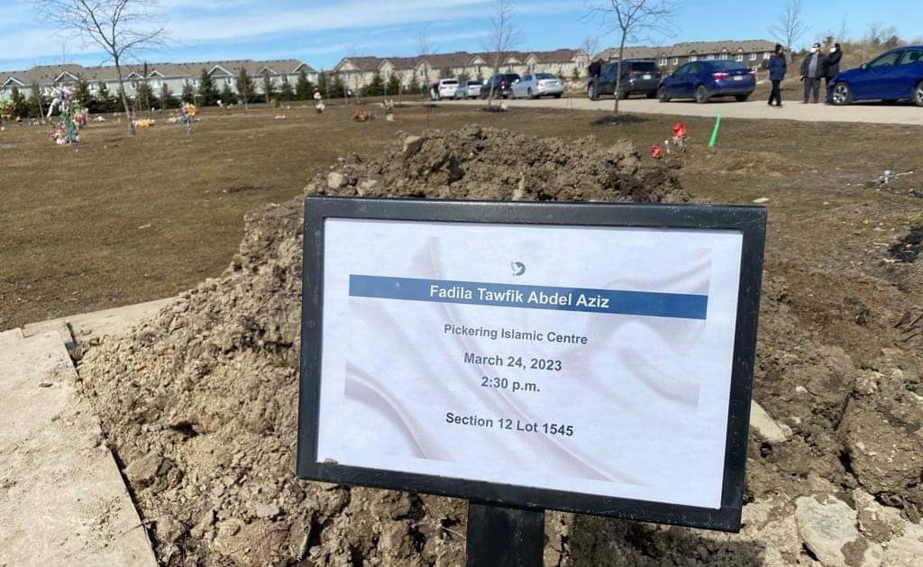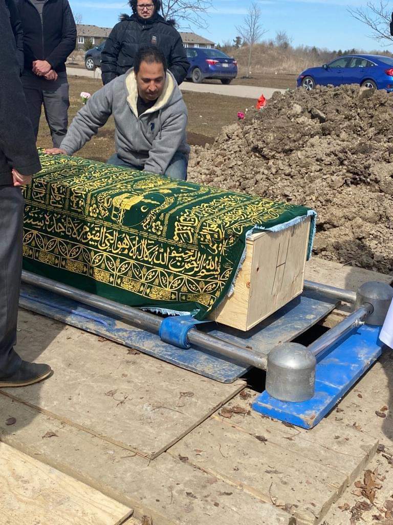 وأضافت: "ستقام صلاة الجنازة يوم الجمعة الموافق 24 مارس، عقب صلاة الجمعة فى مسجد عثمان فى مدينة بيكرينج فى كندا".