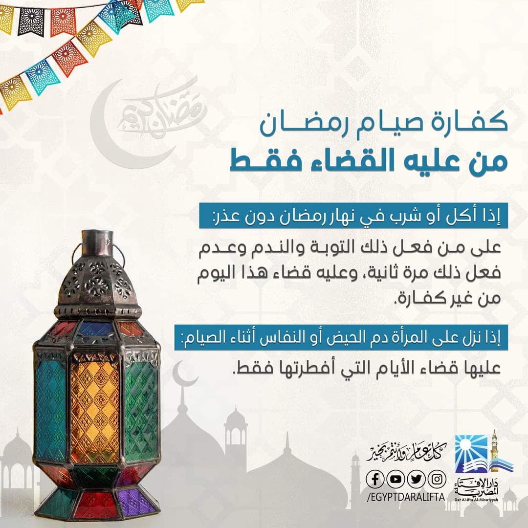 دار الإفتاء تكشف حالات إخراج كفارة صيام رمضان (إنفوجراف)