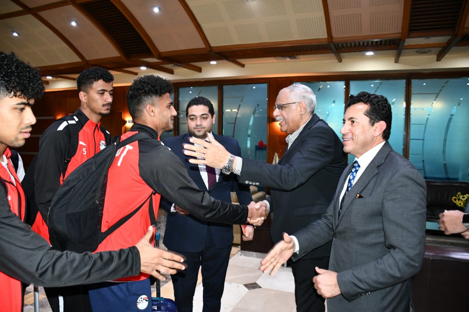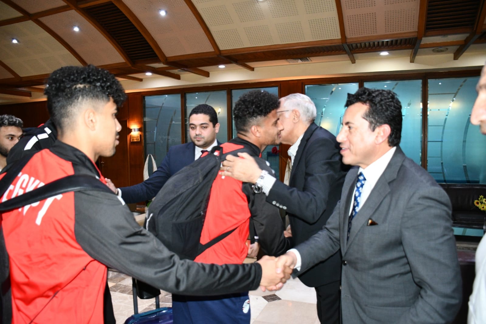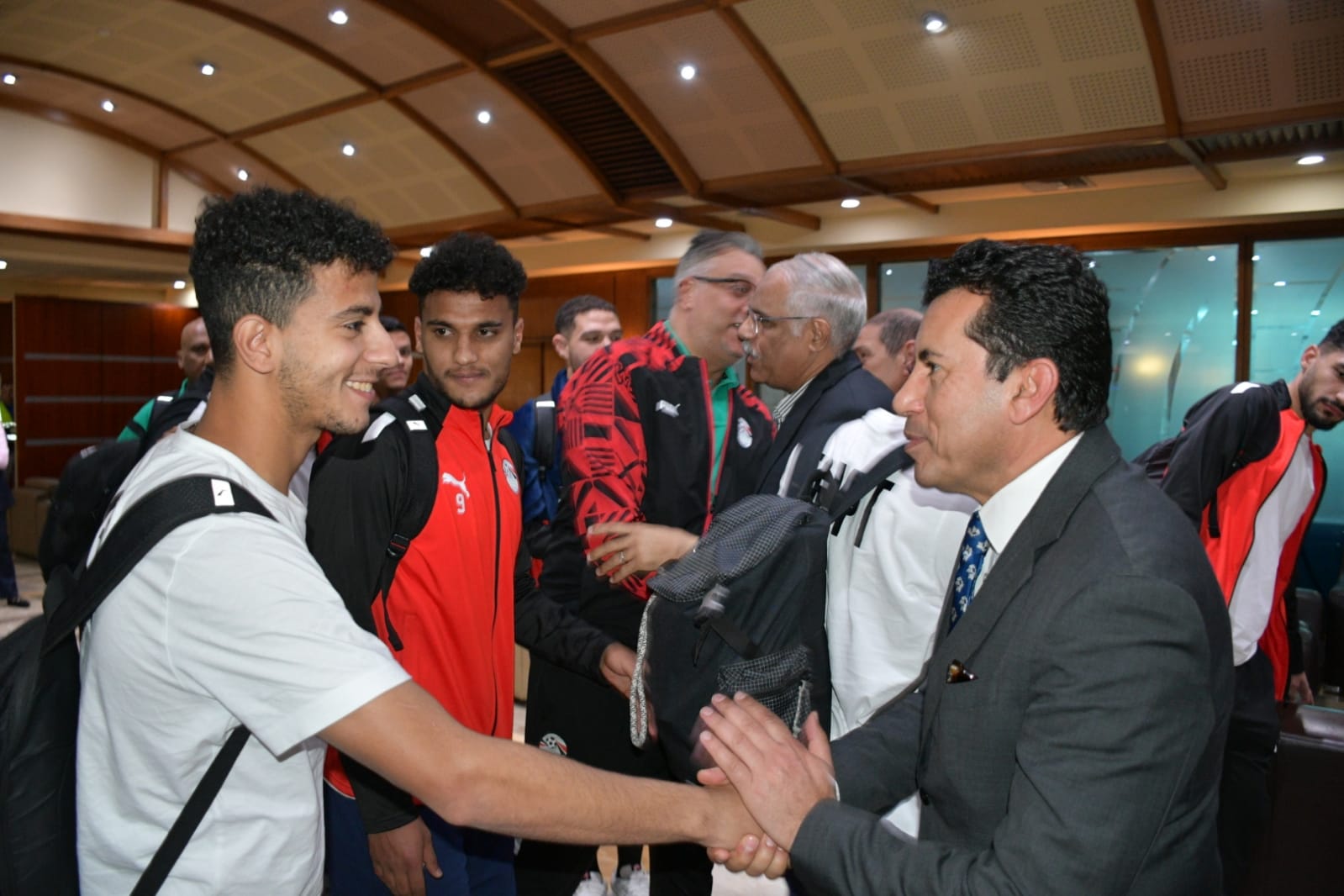 وزير الرياضة يستقبل المنتخب الأوليمبى بمطار القاهرة بعد التأهل إلى كأس الأمم الإفريقية