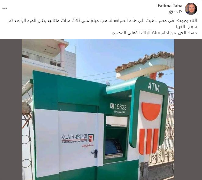 وثقت المذيعة والناقدة الرياضية فطيمة طه ، تجربتها السئية مع ماكينات البنك الأهلي المصري ، بعدما سحبت إحدى الماكينات بطاقتها بعد محاولات فاشلة لإستخراج الأموال.
