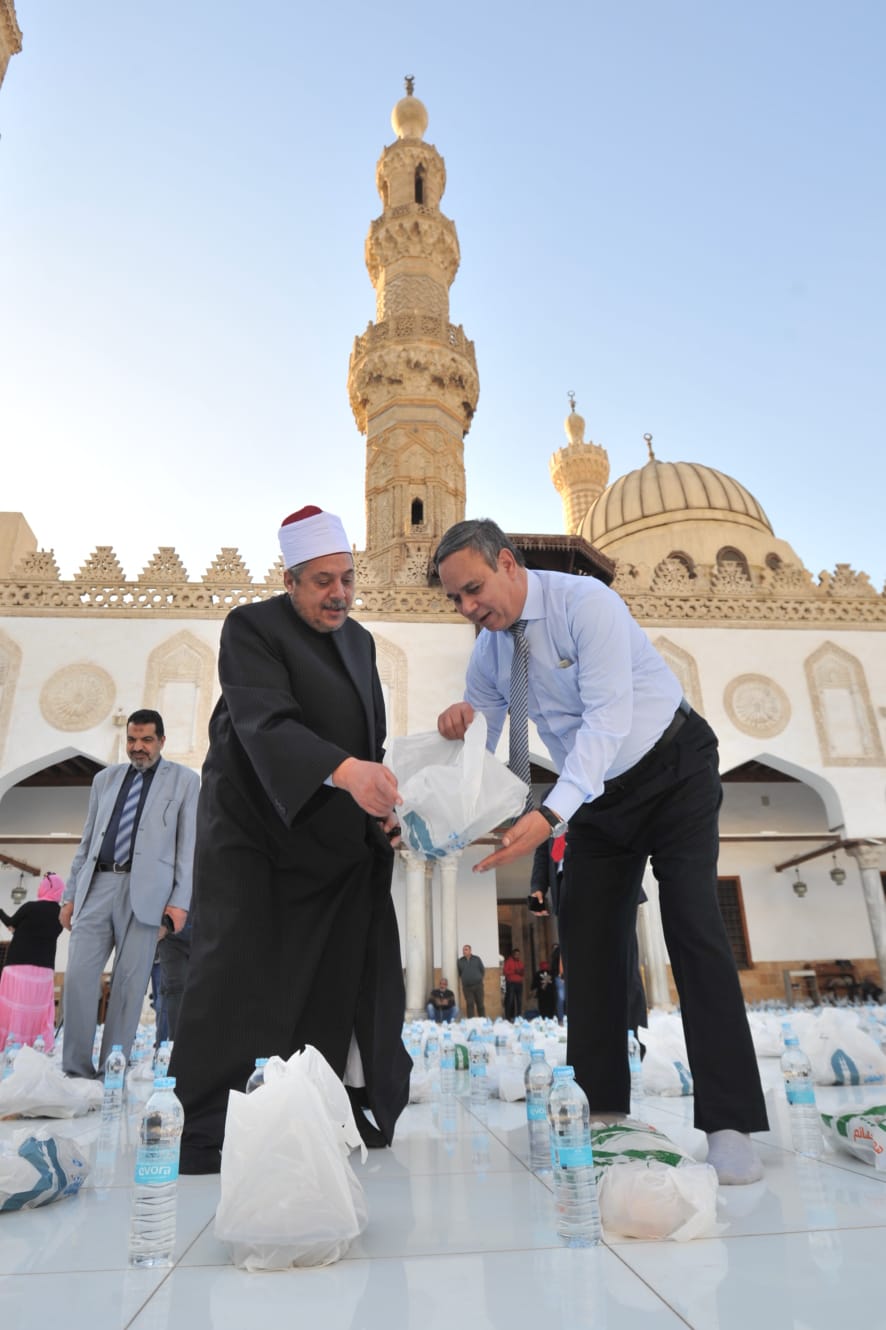 حرص قيادات الأزهر والعاملون بالجامع الأزهر على رفع كفاءة وسير العمل في الإفطار الجماعي الذي ينظمه الجامع للطلاب الوافدين بواقع 4000 وجبة يوميًّا، على مدار شهر رمضان المبارك، ونظم القائمون على الإفطار الوجبات في صفوف منتظمة لتسهيل وتنظيم إفطار الطلاب في صحن الجامع.