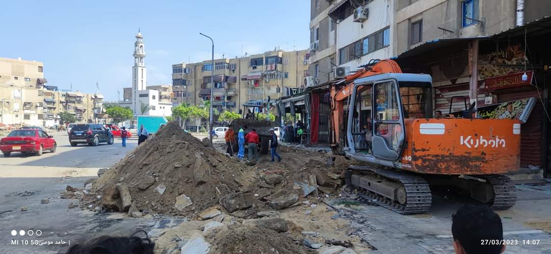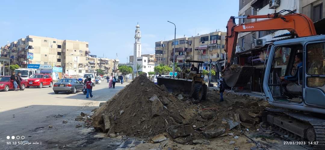 بدء أعمال تطوير الشارع الفاصل بين منطقتى بنك الاسكان وشباب الخريجين بالضواحي