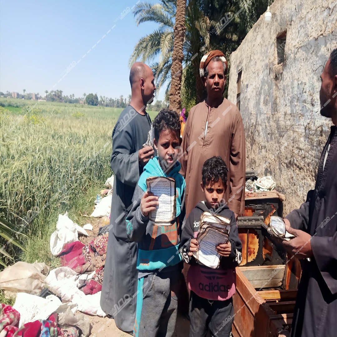 وأضاف "أحمد عبيد" أن كتب القرآن الكريم احترقت والدقيق ويقومون بتشغيل القرآن ليلًا نهارًا وعند وقوع حريق يتوقف القرآن فجأة ثم تشتعل النيران وداخل البطاطين المحتفظين بها في أكياسها، والأكل والأموال والذهب يختفي نهائيًا، وخزين القمح لكل أفراد العائلة دمرته النار، مشيرًا أنهم يعيشون في ورديات فيما بينهم تحسبًا لنشوب حريق فيسرعون للإطفاء خوفًا وحرصًا على حياة أطفالهم.