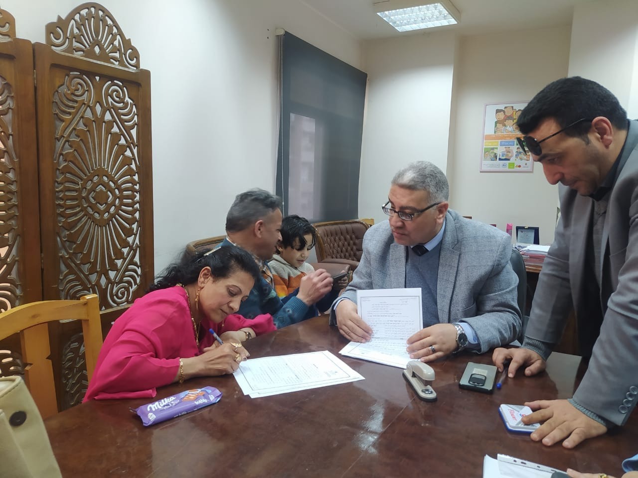 وقامت آمال ميخائيل، والدة الطفل شنودة بالتبني بالتوقيع على إقرار باستلام الطفل والتعهد بتربيته، وسط زغاريد النساء ، حيث سادت حالة من الفرحة العارمة برجوع الطفل .