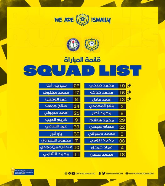 أعلن حمزة الجمل المدير الفني للنادي الاسماعيلي قائمة فريقه لمواجهة سموحة في الدوري المصري، وجاءت قائمة الاسماعيلي على النحو التالي :