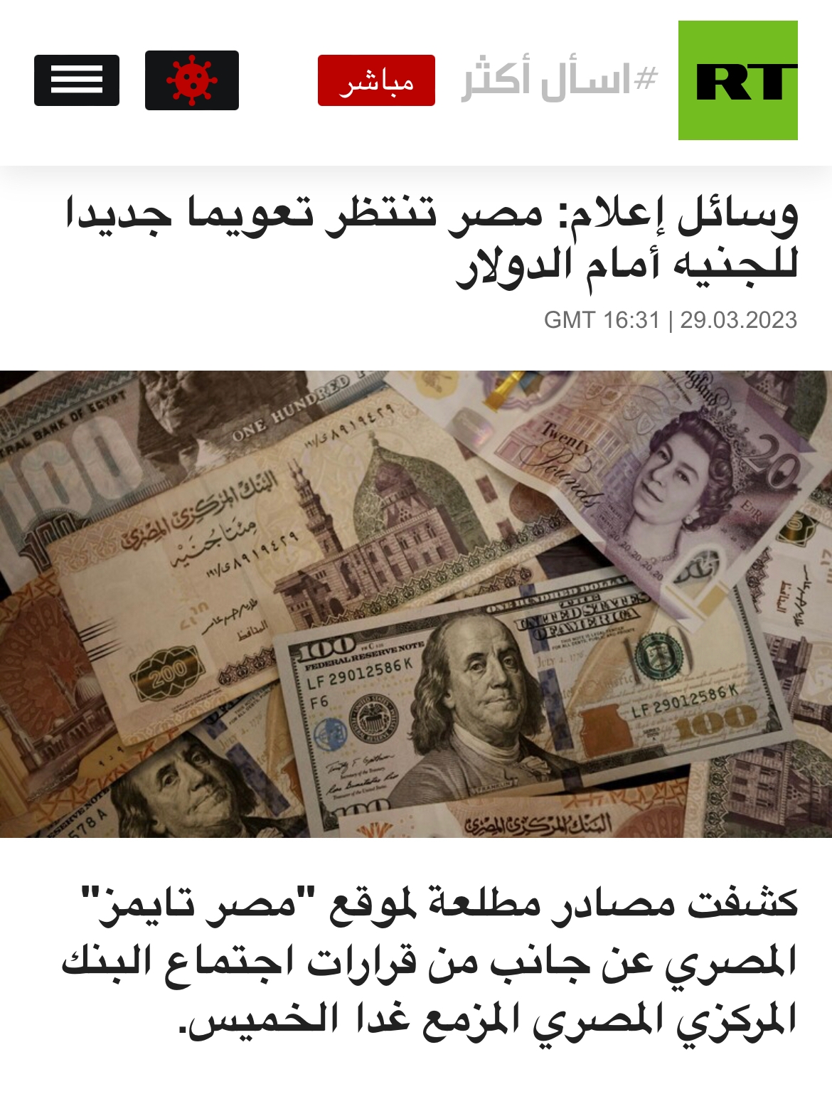 روسيا اليوم تبرز انفراد "مصر تايمز" بشأن قرارت البنك المركزي المصري