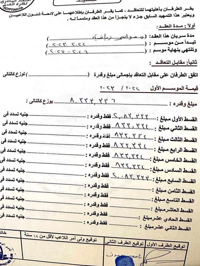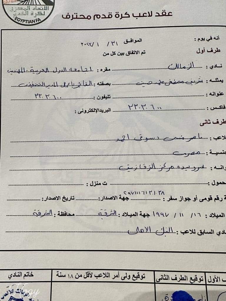 تسريب عقد ناصر منسي لاعب نادي الزمالك (صور)