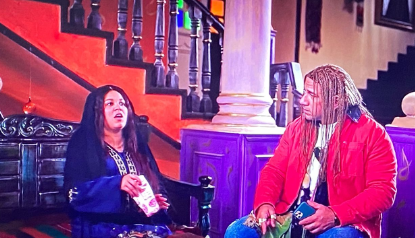 مسلسل الكبير أوي الحلقة 8.. وبعد معرفة الكبير أن أحمد السقا يقصد بـ"مربوحة" الخاصة به الفرس ، قام بتوجيه الشكر له، ليعاتبه أحمد السقا عن مهرجان المزاريطة بعد معرفة أن من يجلس أمامه هو عمدة المزاريطة ليقول السقا “ يرضيك يكلمونى أقعد أنا وكريم عبد العزيز وأحمد عز فى أوضة واحدة ”، كما سأل السقا الكبير عن شقيقه حزلقوم.