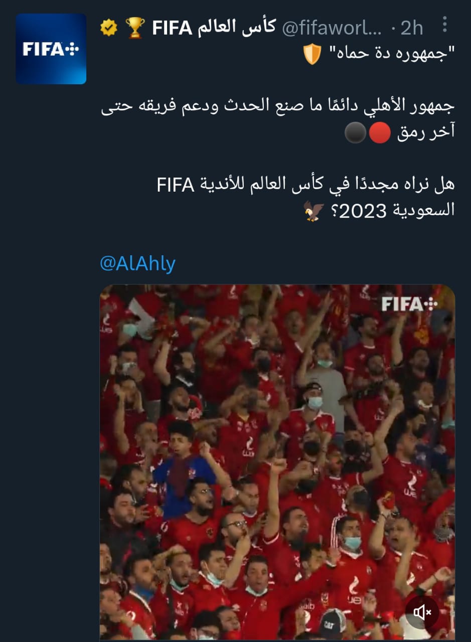 الاهلي .. أضاف: "جمهور الأهلي دائمًا ما صنع الحدث ودعم فريقه حتى آخر رمق، هل نراه مجددًا في كأس العالم للأندية.. السعودية 2023؟".