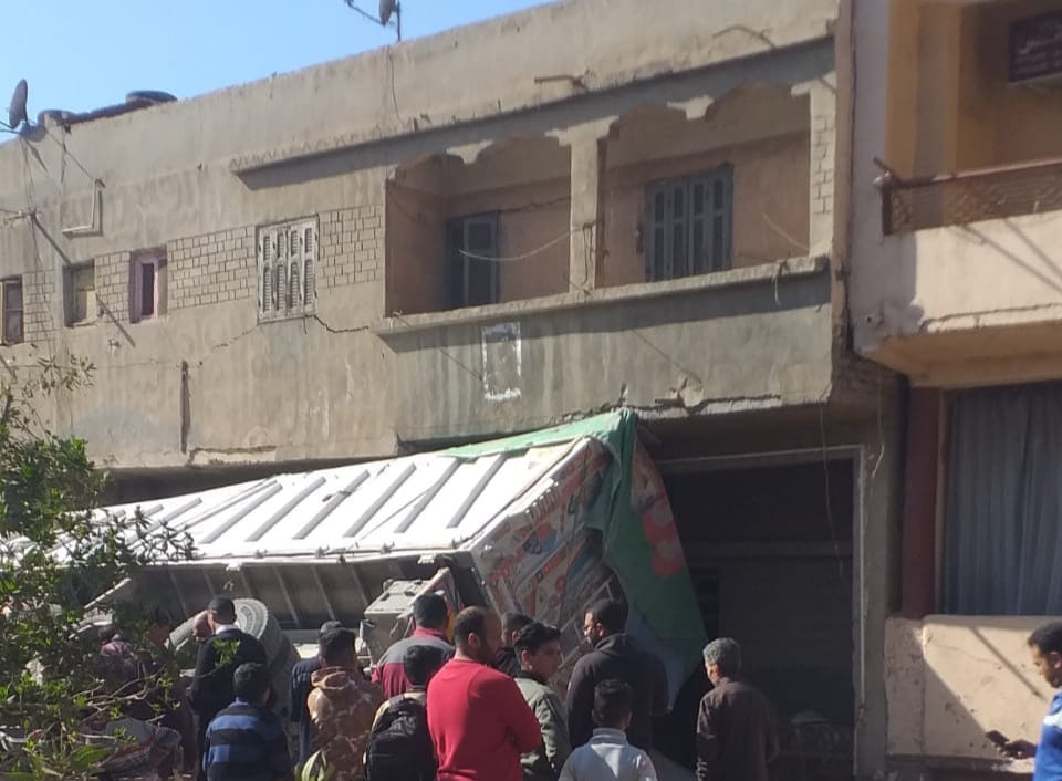 انقلاب مقطورة على منزل بقرية درين في الدقهلية (صور)