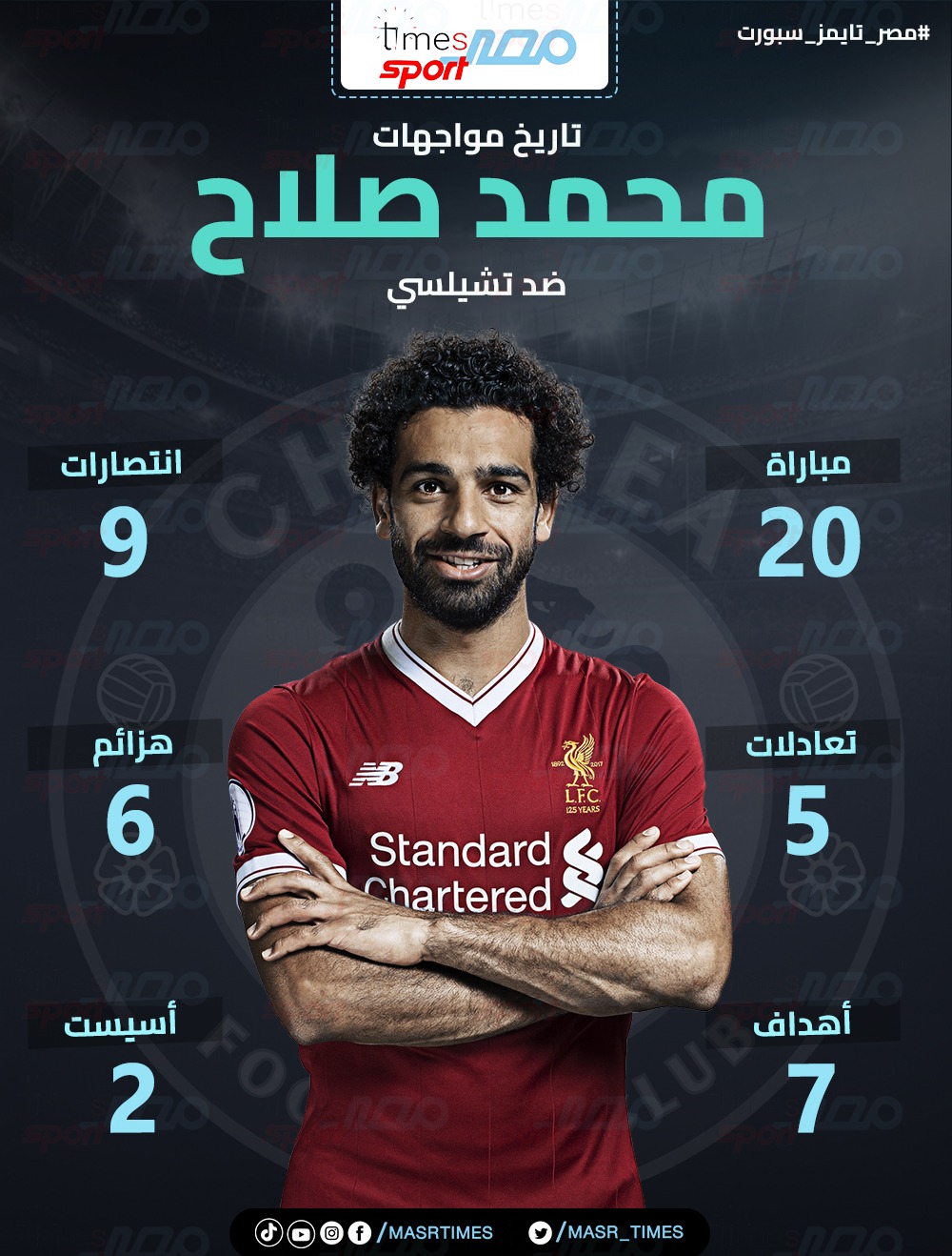 تشيلسي ضد ليفربول ..نجح الفرعون المصري محمد صلاح فى هز شباك تشيلسي بـ7 أهداف، وساهم في صناعة هدفين فى كل المسابقات "الدوري الإنجليزي، دوري أبطال أوروبا، الدوري الأوروبي، كأس السوبر الأوروبى، كأس الاتحاد الإنجليزى، كأس رابطة المحترفين الإنجليزية".