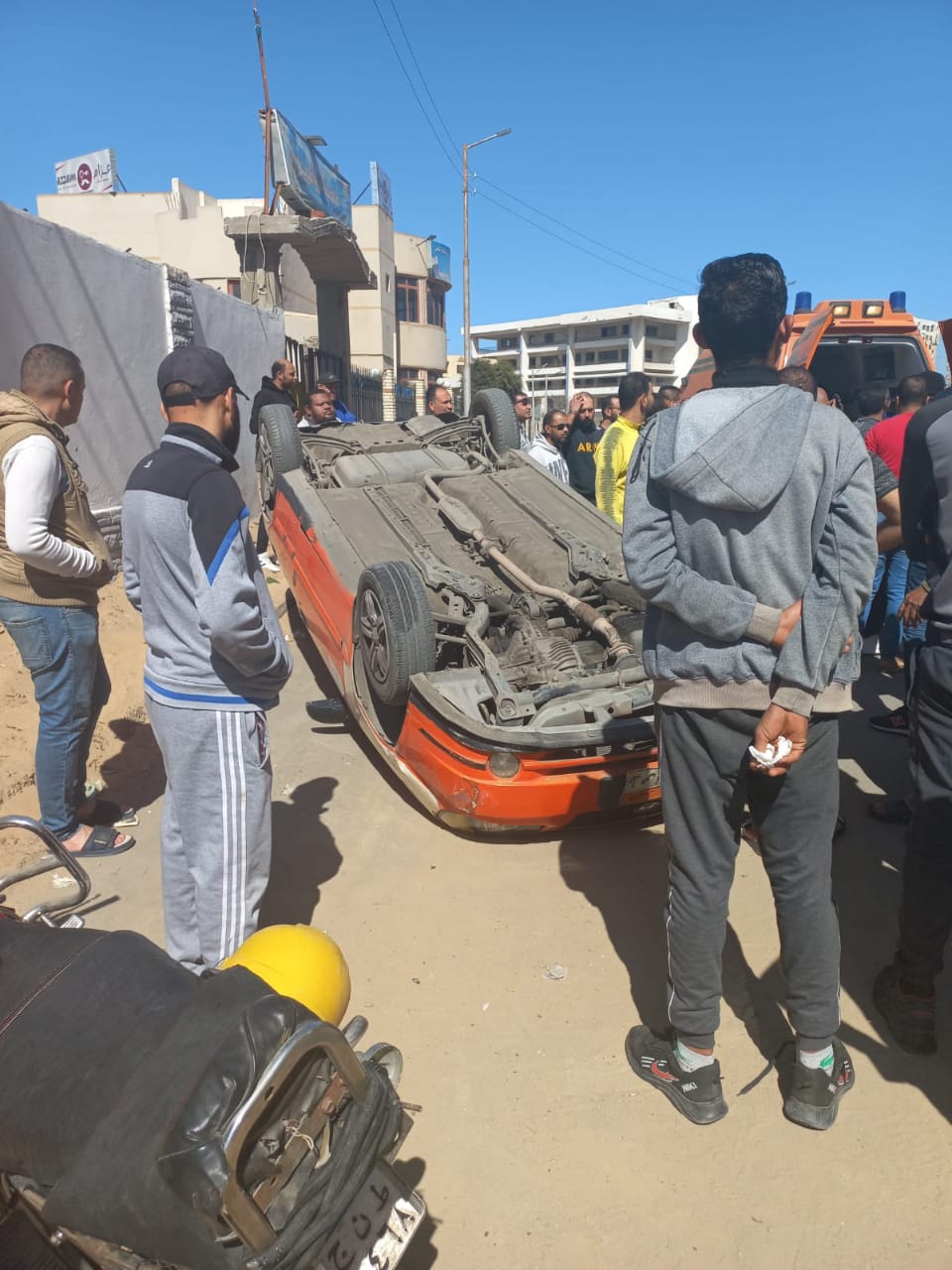 إصابة سائق في حادث انقلاب سيارته الأجرة بالإسماعيلية (صور)
