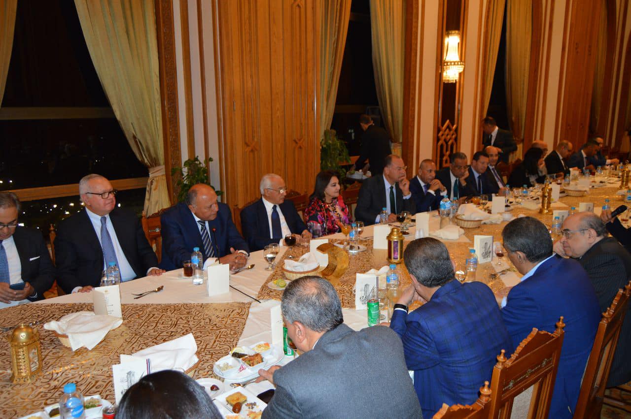 استضاف سامح شكري وزير الخارجية جلسة حوارية مع رموز الإعلام والثقافة والفكر حول أهم قضايا السياسة الخارجية ورؤية مصر للمشهدين الإقليمى والدولى علي مائدة إفطار بمقر وزارة الخارجية.