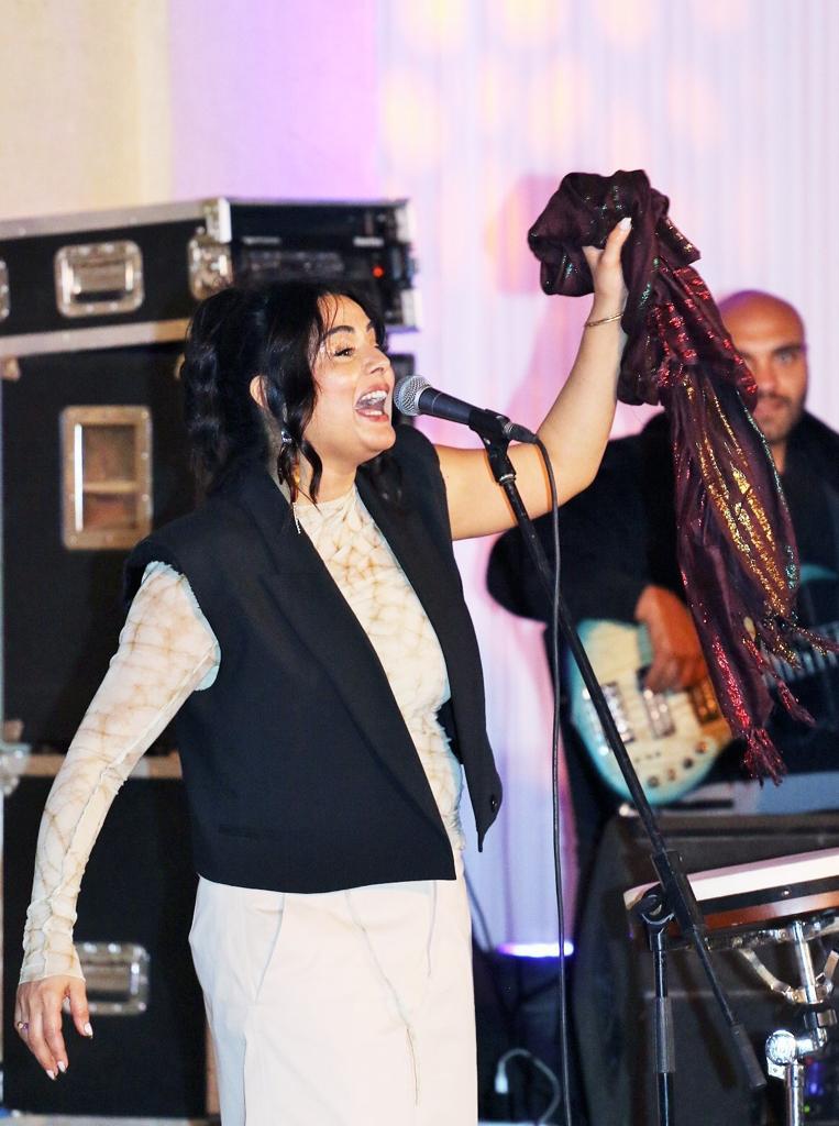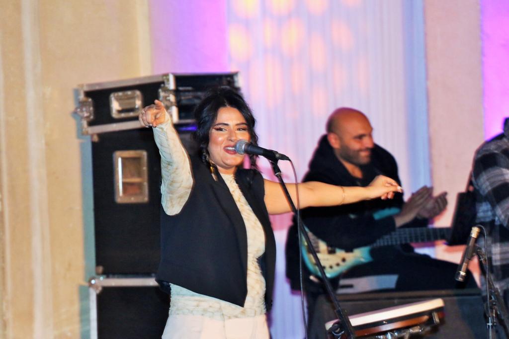 فعلى المسرح المكشوف ووسط تفاعل واعجاب حشد جماهيرى ضخم وباداء حيوى حماسى عزفت على الة الجيتار وغنت باسلوبها المميز لتعيد صياغة التراث حيث مزجت الفنون التقليدية والغناء الشعبي بالموسيقى الحديثة وقدمت مجموعة من اعمالها الخاصة كان منها بعد البيبان ، دواير ، ياجنوبي ، الحرام ، الله باقي ، السيرة الهلالية ، كتر الوجع ، سكون ، تدور وترجع ، كنت بخاف ، تماثيل ، ياللي معدي ، يابدر ، وصول ، الكون ، الليل وطاير يا هوي.