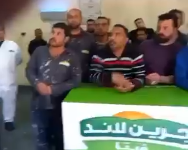 وتداول رواد مواقع التواصل الاجتماعي فيديو لمجموعة من العمال بشركة جرين لاند وهم يطالبون المسئولين بالتدخل لحل مشكلتهم ، مستنكرين قيام المسئولين بالشركة بتحرير محاضر ضد العمال المطالبين بحقهم فى زيادة أجورهم، قائلين" بنطالب أي جهة حكومية تيجي تحمينا من الراجل ده".