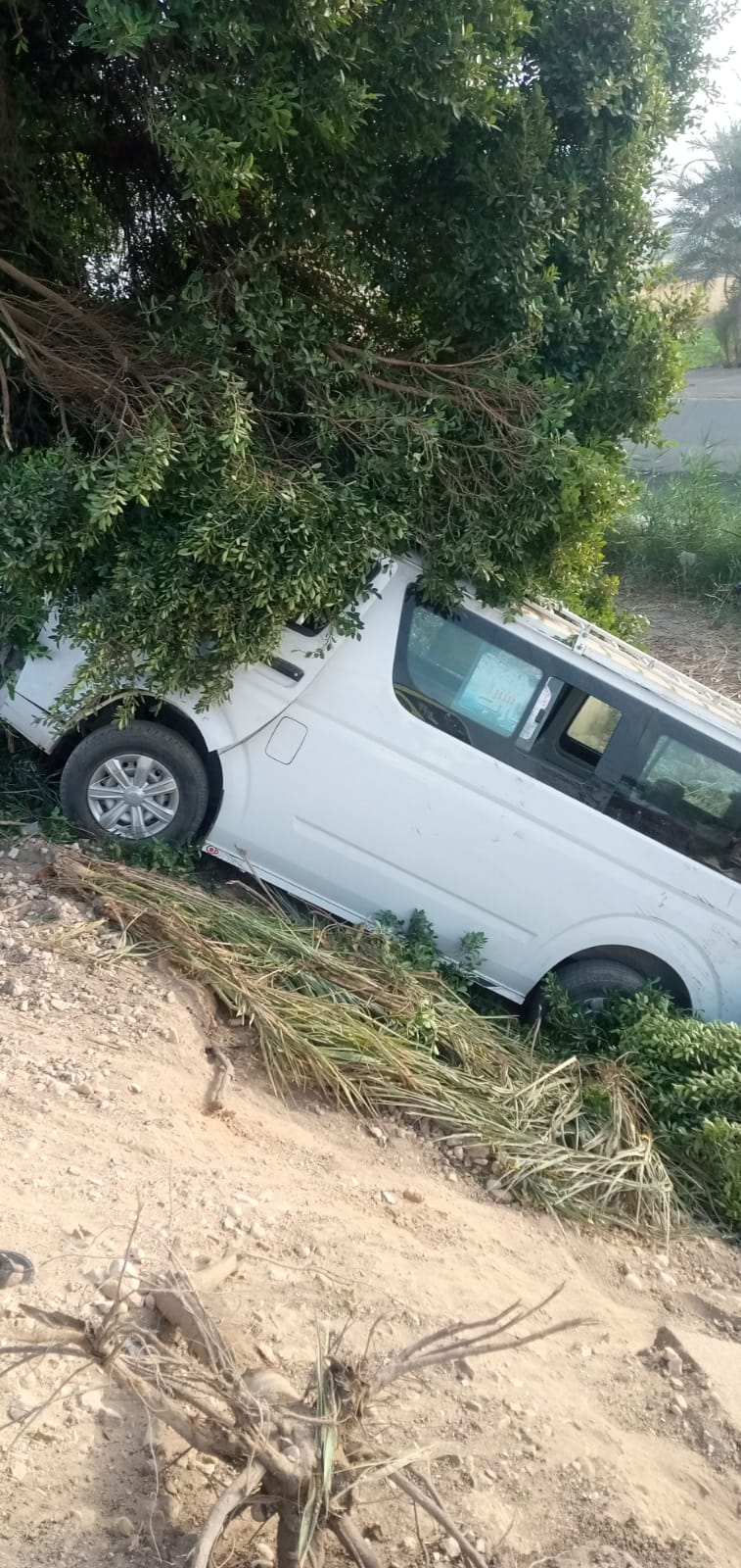 بالأسماء.. إصابة 9 أشخاص إثر انقلاب ميكروباص في قنا (صور)