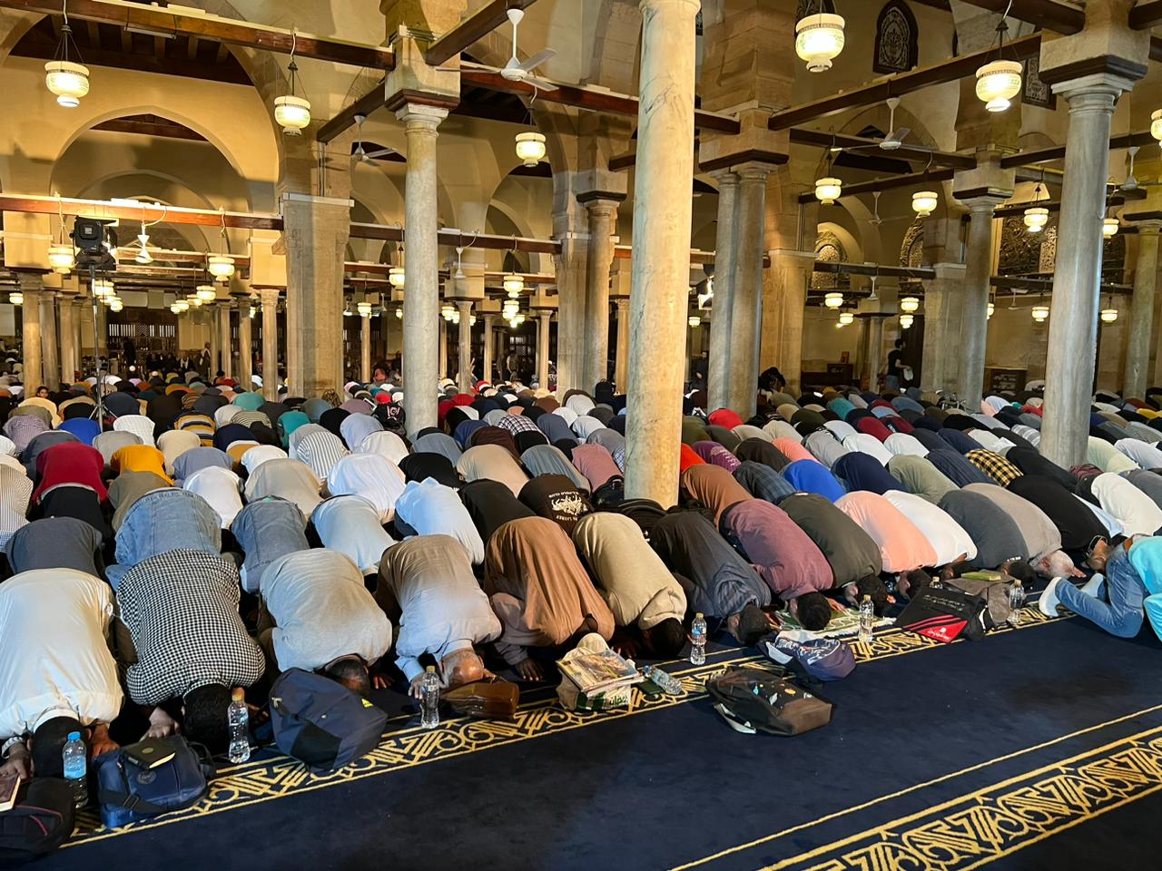 آلاف المصلين يؤدون العشاء والتراويح في الجامع الأزهر