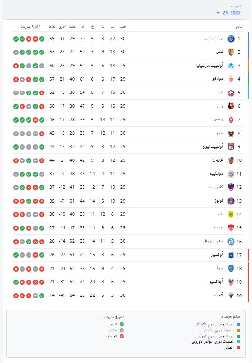 ترتيب الدوري الفرنسي بعد فوز باريس سان جيرمان على نيس